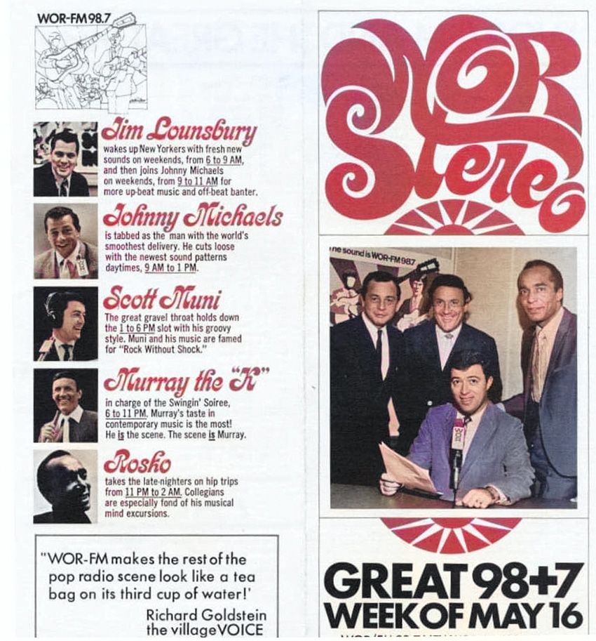WOR-FM announces the jocks, but they'd have to wait a bit longer. And note that Rosko (Bill Mercer) wasn't part of the announcement as yet.