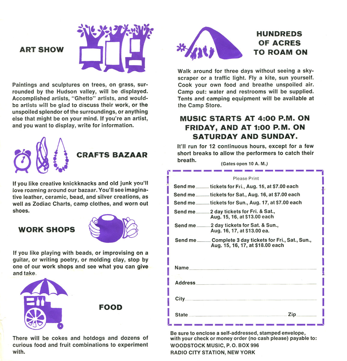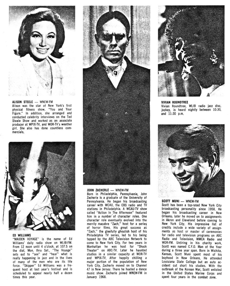 The festival was originally produced by Hilly Kristal (CBGBs) and Ron Delsener, and a program was produced. Part of the program was dedicated to bios of each of the DJs who hosted the shows. (I believe these pages were from the 1969, 1970 or 1971 program.) At one of the shows (I don't remember the act, but it was probably the Butterfield Blues Band), I was sitting in the first row of the "bleacher" section, way in the back, but John Zacherley came out to sit with us, which gave us a great thrill at the time.