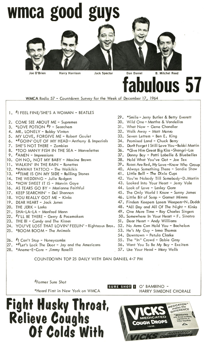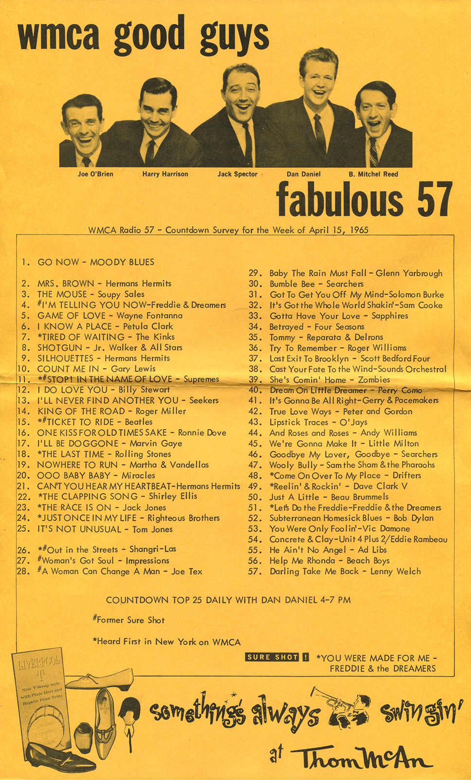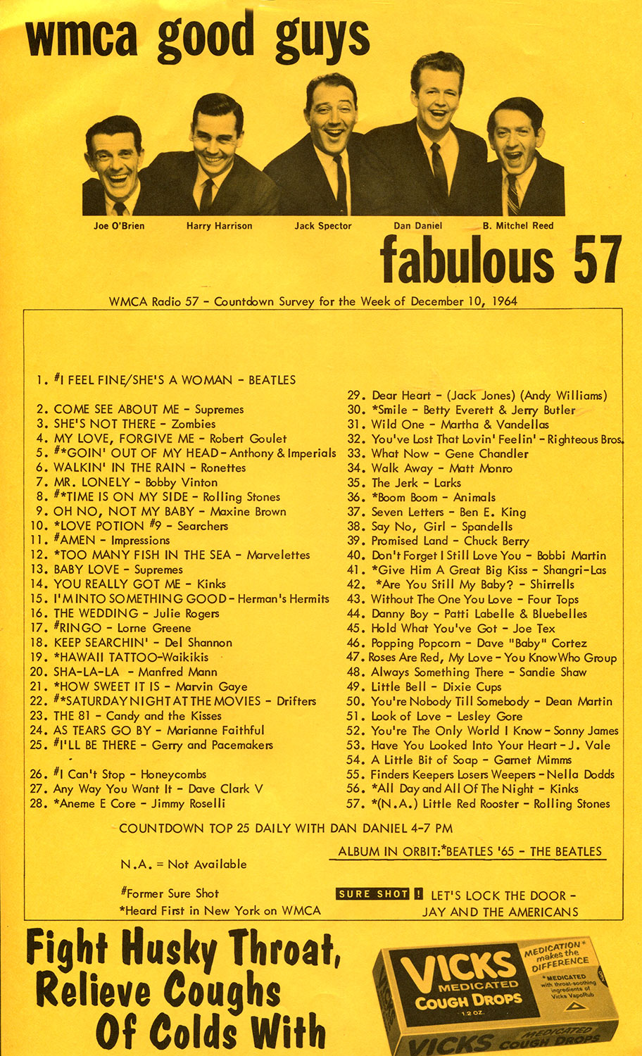 Reed is also given credit for pursuing the Beatles in England before they came to the U.S. This led to a lot of early promos by the Beatles in support of WMCA, although they also later supported WABC, thinking it was the equivalent of the BBC.