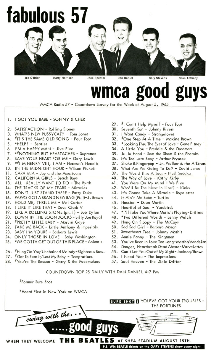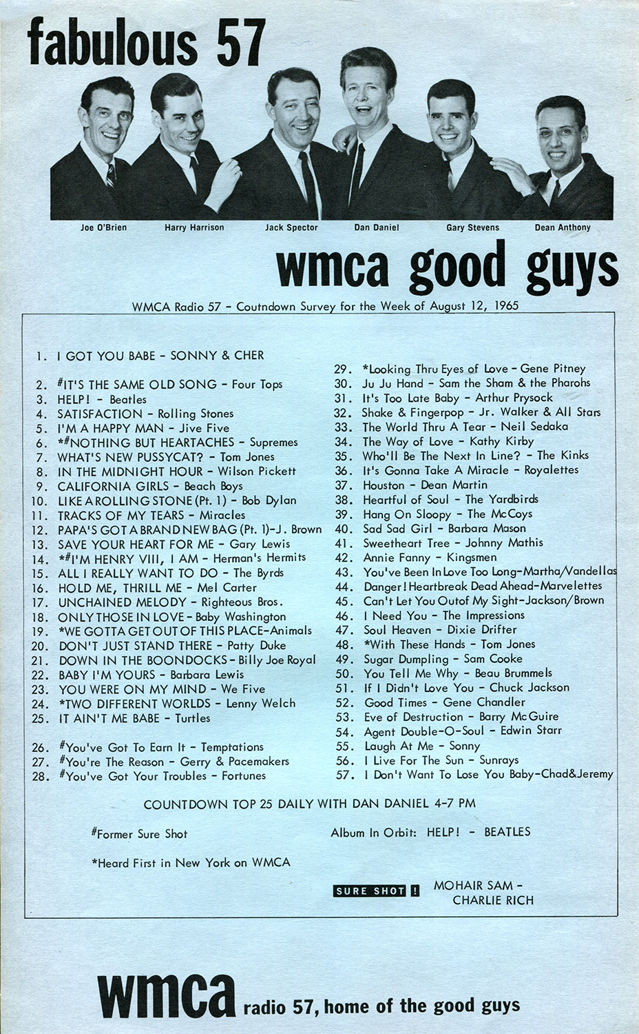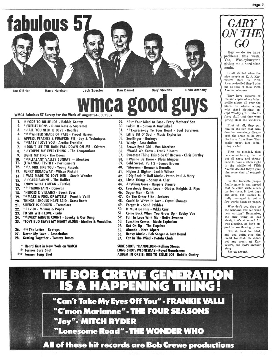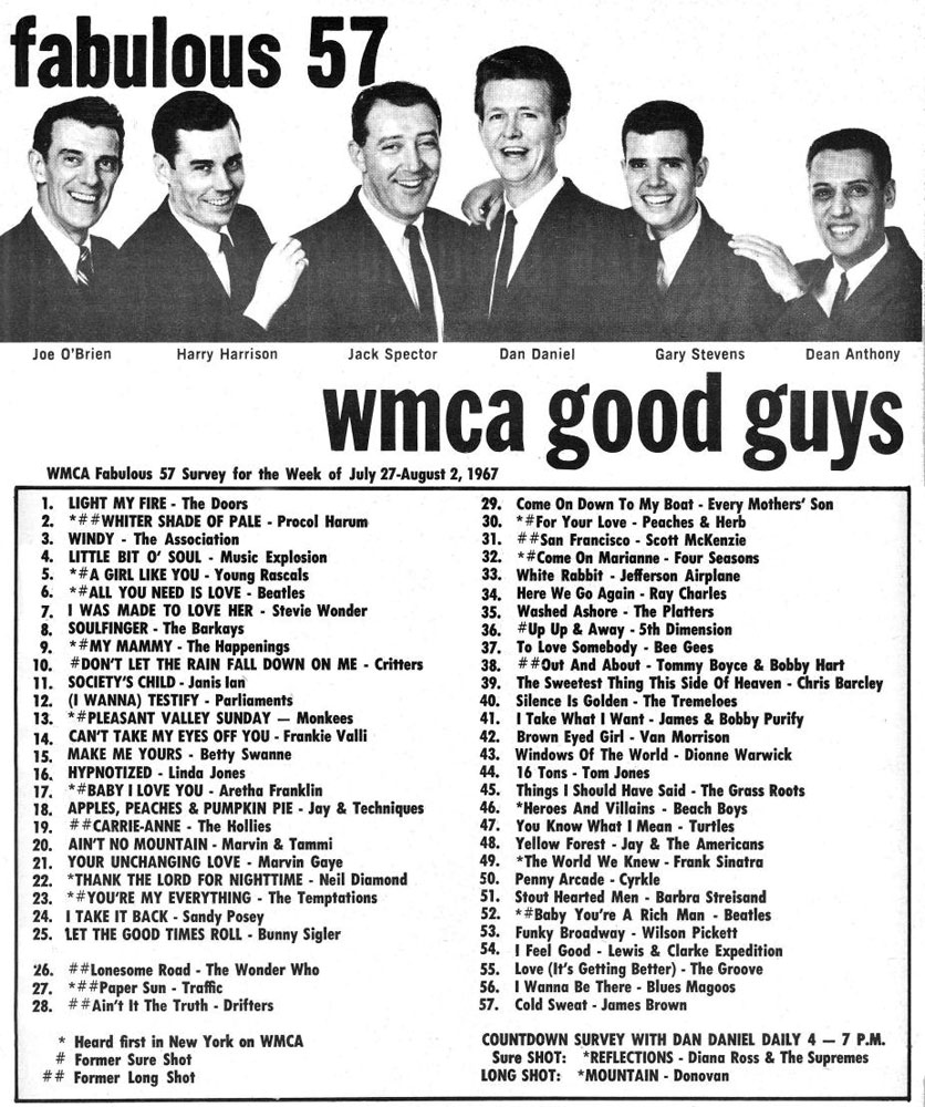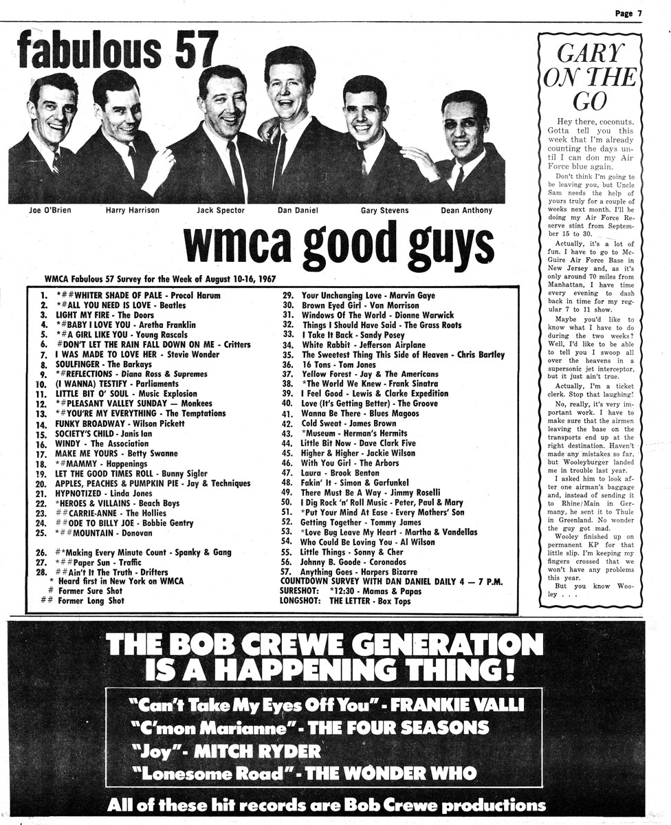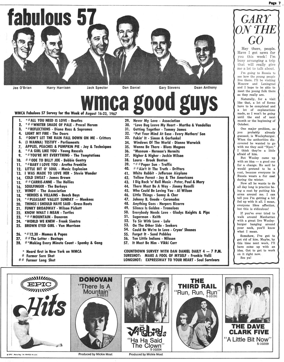 GO Magazine's versions of WMCA's surveys from August 10th, 16th and 24th, 1967.