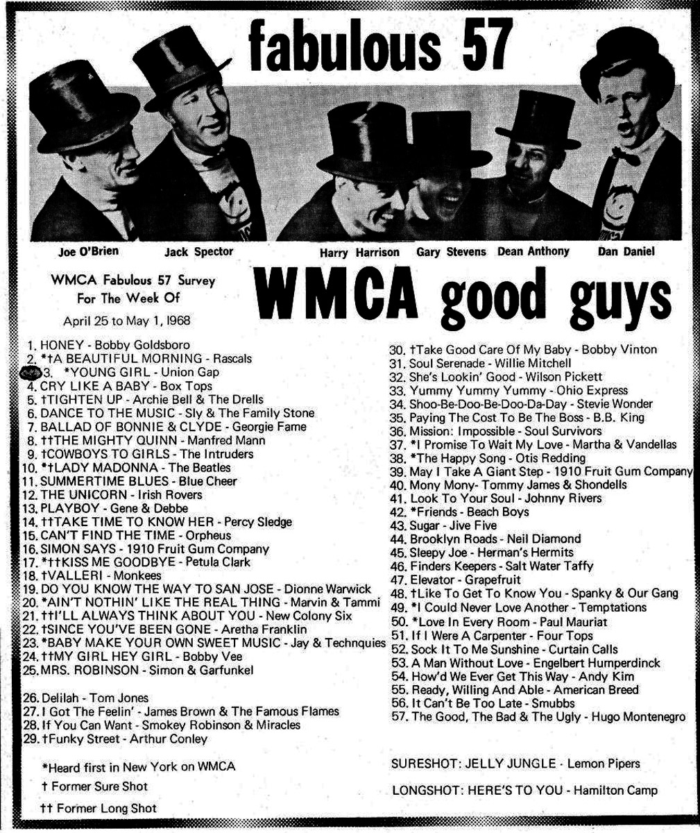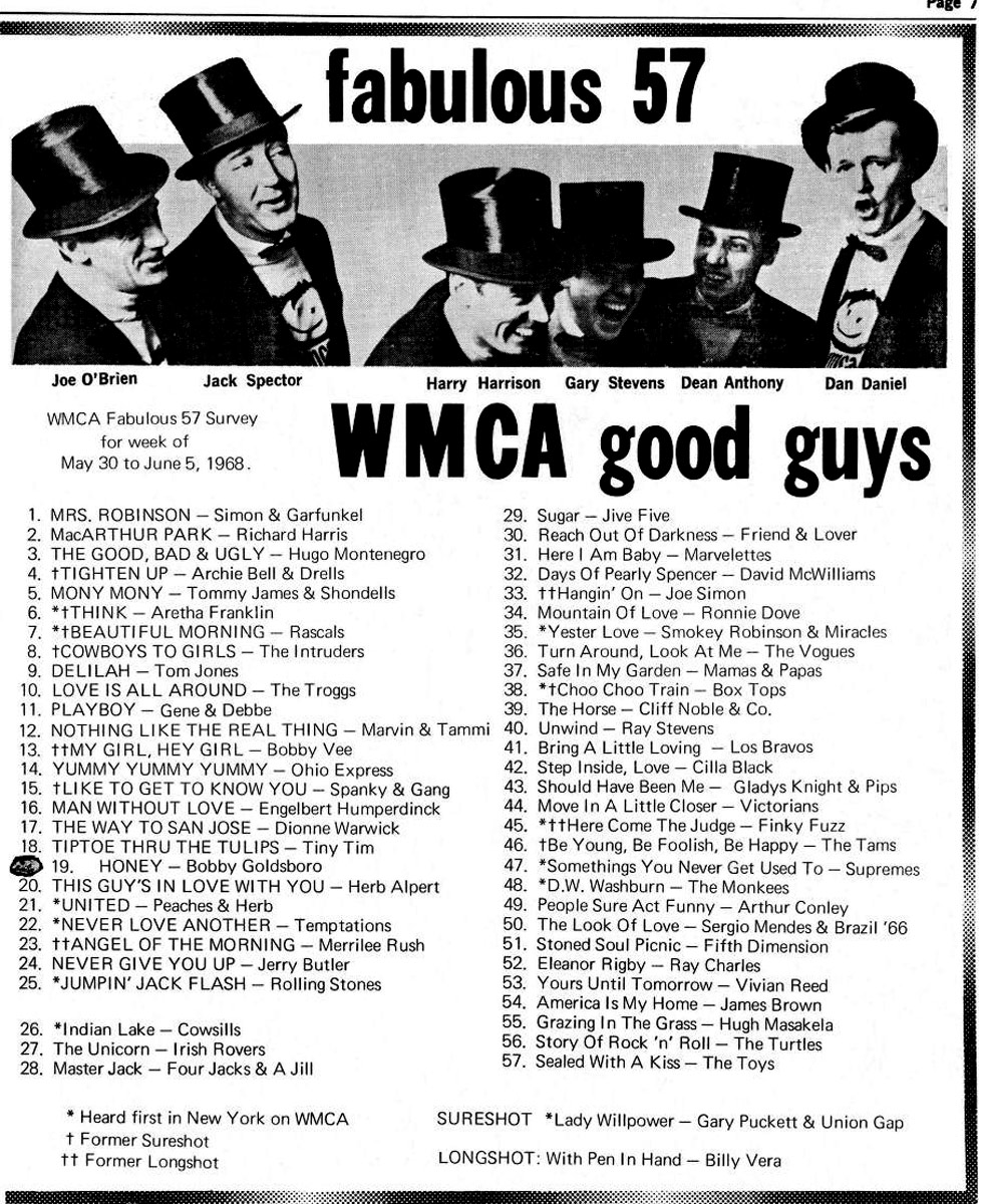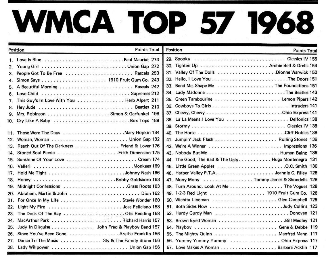 The WMCA survey from May 2nd and 30th 1968 as published in GO magazine.