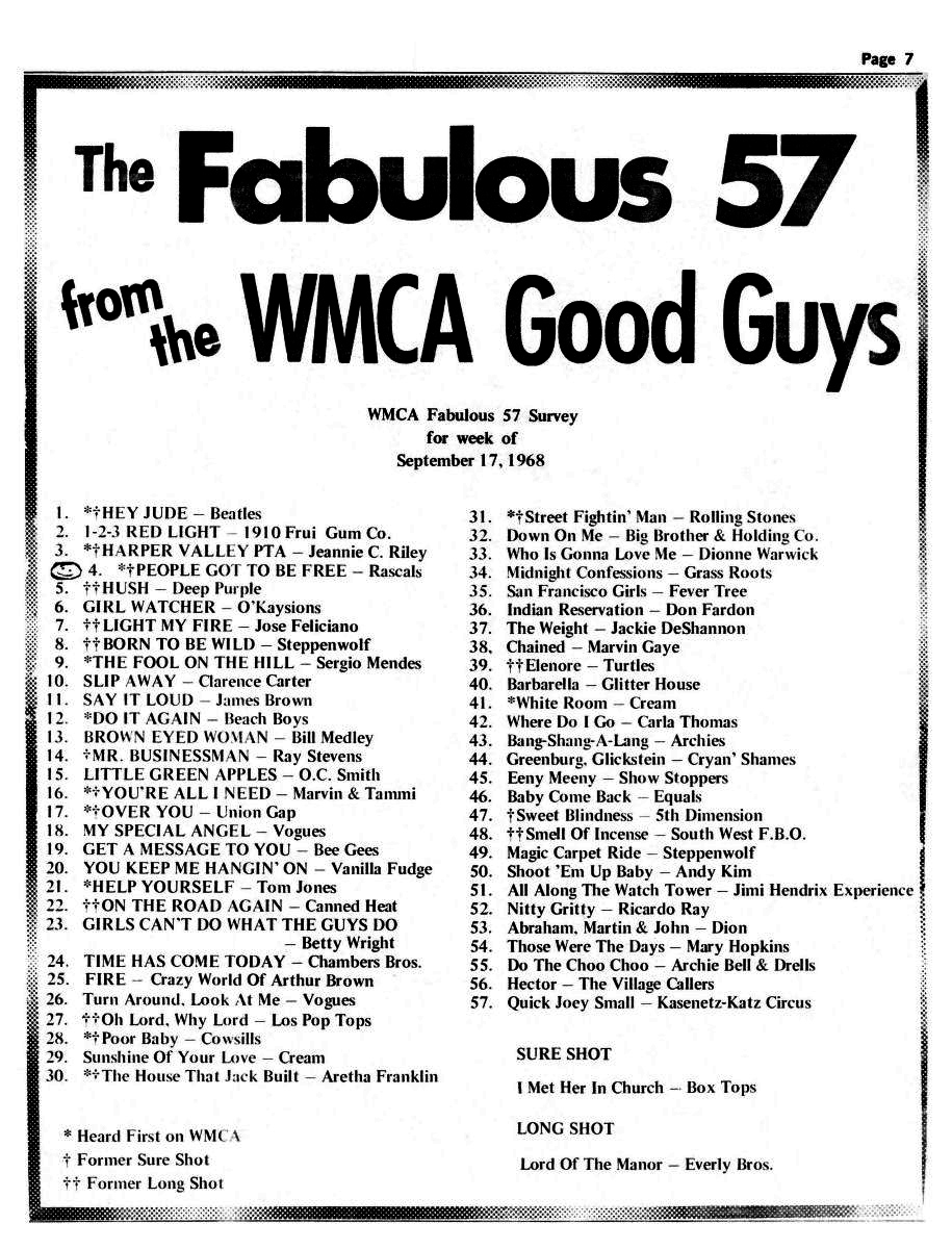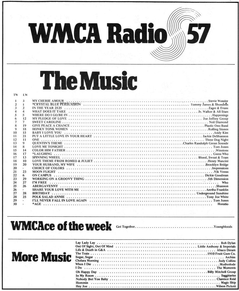 The WMCA survey from September 18th, 1969 as published in GO magazine.
