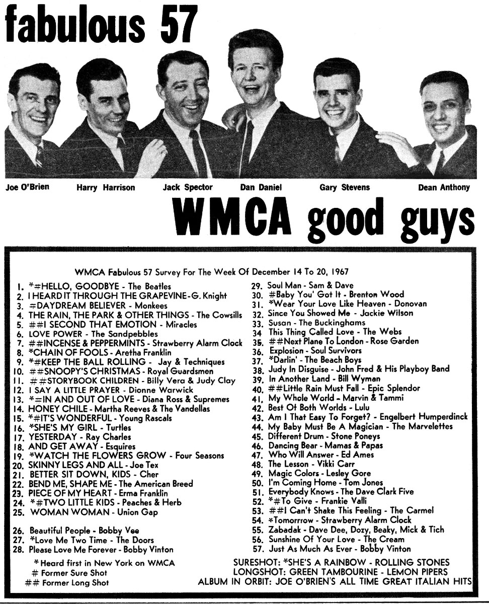 The WMCA year-end survey from December, 1967 as published in GO magazine.