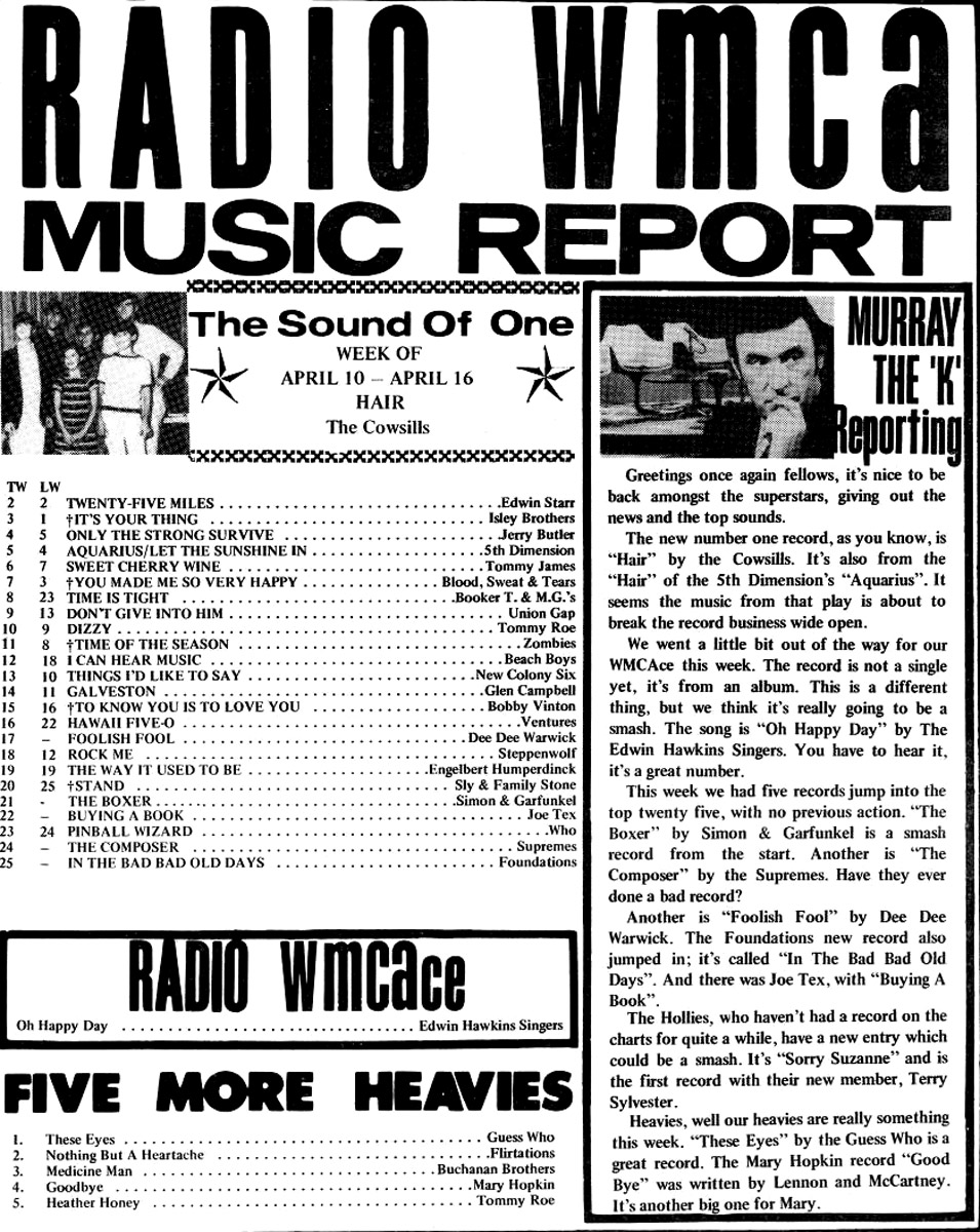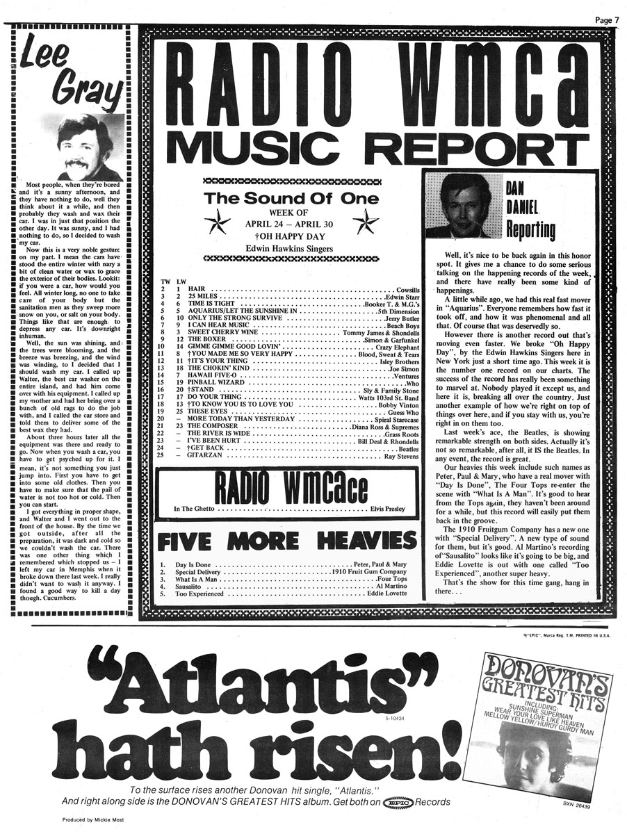 The WMCA surveys from April 10th and 24th, 1969 as published in GO magazine. Notice the column from Murray the K in the first survey and the columns from Lee Gray and Dandy Dan Daniel in the second..