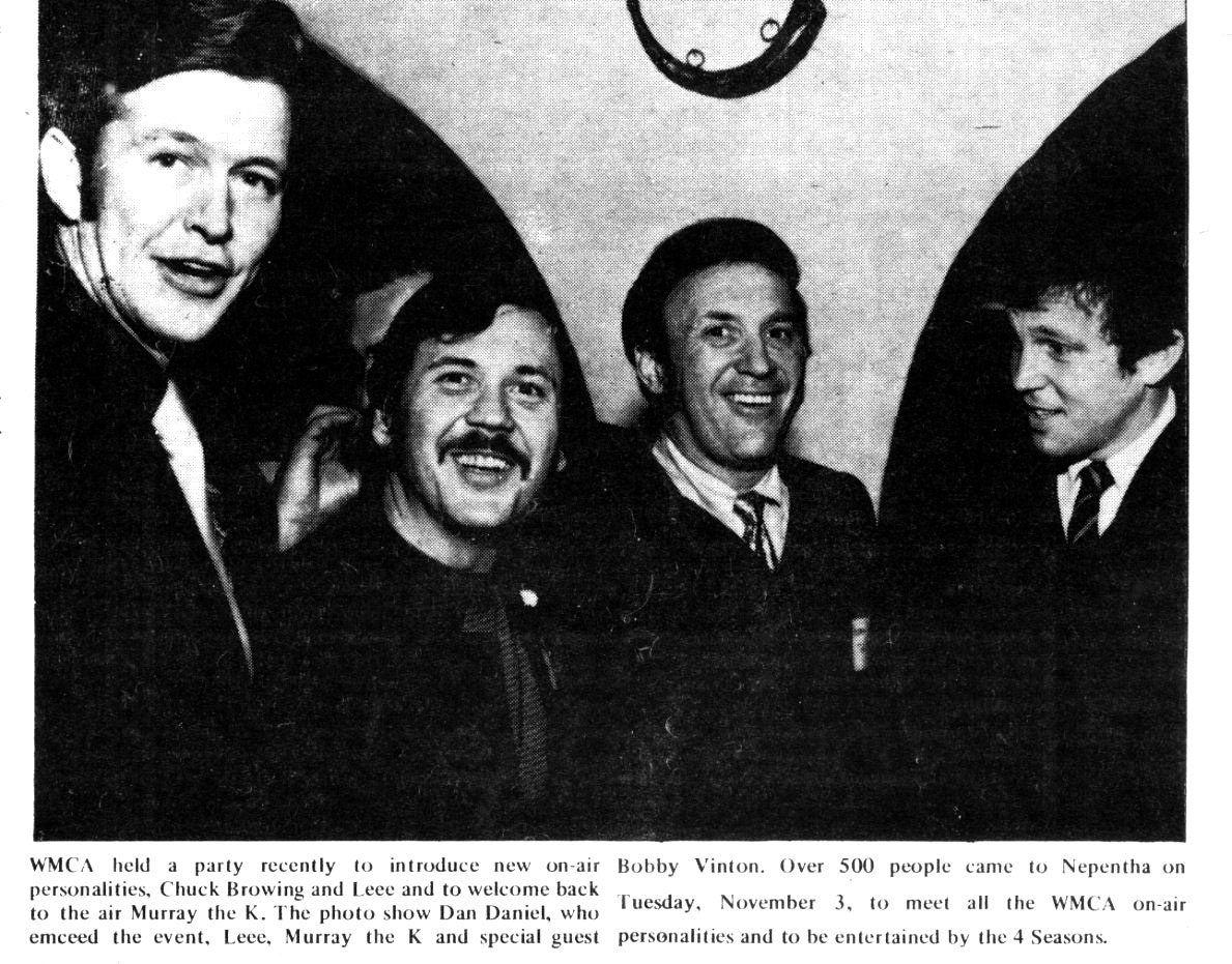 Here's an photo and (screwed-up) caption, probably from Billboard, announcing a party to celebrate Murray the K's return to WMCA, which actually happened back in November (see above).