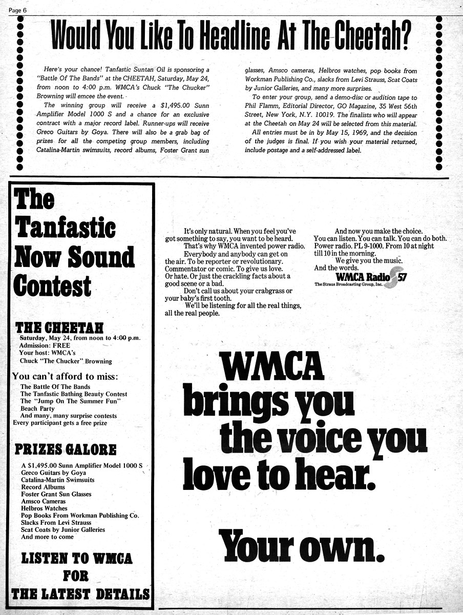 Here's an image of the late-era Good Guys supposedly taken at the Cheetah and pubished in August of 1969. However, I would think that this is actually an older photo because the "Good Guys" promo had ended by now.